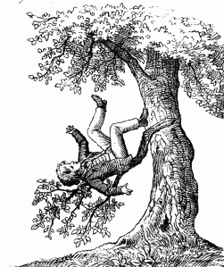 So there goes Jerry.. reaching out trying to grab hold of every limb he falls into on his way down … oh and screaming all the way. Limb after limb just breaks as he falls. He lands and by means of some sort of miracle only has scratches and bruises… nothing was broken. The Captain shouts down, are you ok? Jerry shouts back to them.. I’m ok but yall go around!